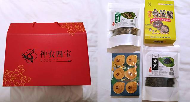 平时都不在旅游景点购物,这次在神农架就买了神农四宝:干的小花菇拿回去煲鸡,干木耳也可以用来炒鸡,香脆菇开袋即食,小小的杯装蜂蜜很方便食用,一次开一个,太棒啦!