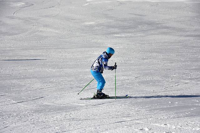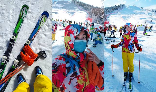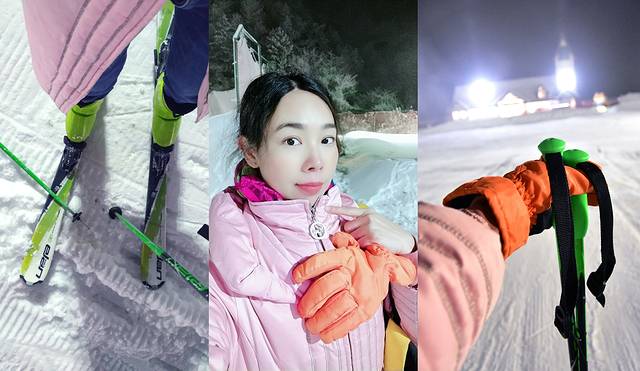 第一次滑夜场,直接穿着羽绒服滑的,请了一个教练,教了一个小时,教完之后就自己滑了,一共滑了三个半小时,就是穿着自己的长款羽绒服滑雪有点碍事,长款的衣服有点妨碍腿打开,新手学刹车的时候要把腿打开成一个很大的内八字,所以穿着短款的衣服更加方便。