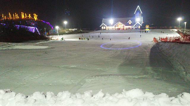 这个雪场也叫做龙降坪七彩星空滑雪场,因为雪场周围设置了LED彩灯,晚上打开就闪呀闪非常漂亮;还有四面都有音箱,立体声环绕,不间断播放DISCO音乐,还有射灯在雪场上“涂鸦”,好嗨哟!有点夜总会气氛!