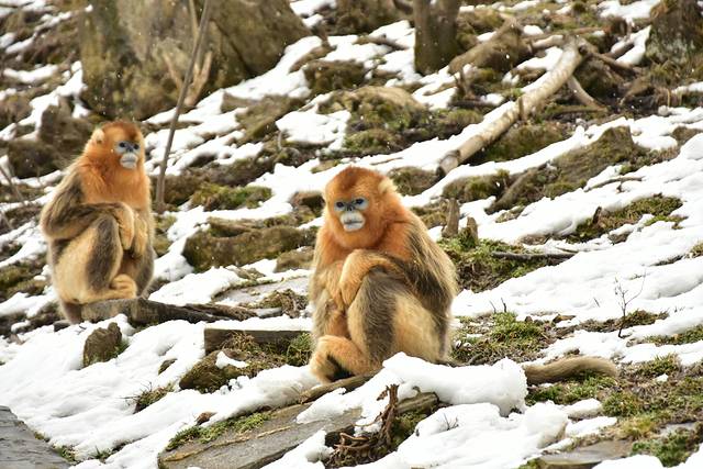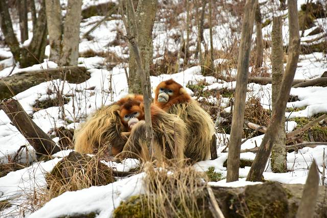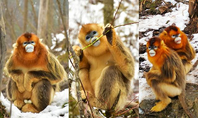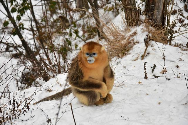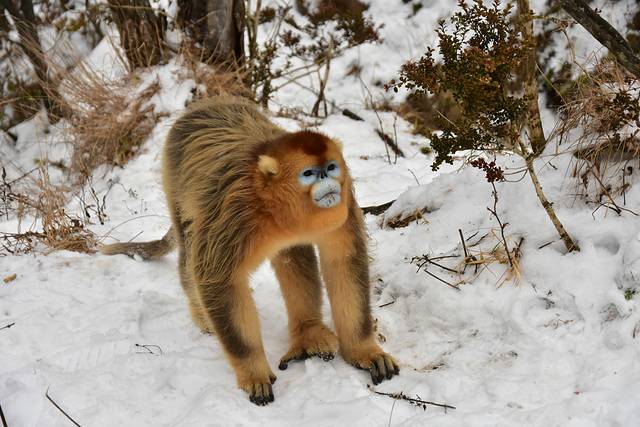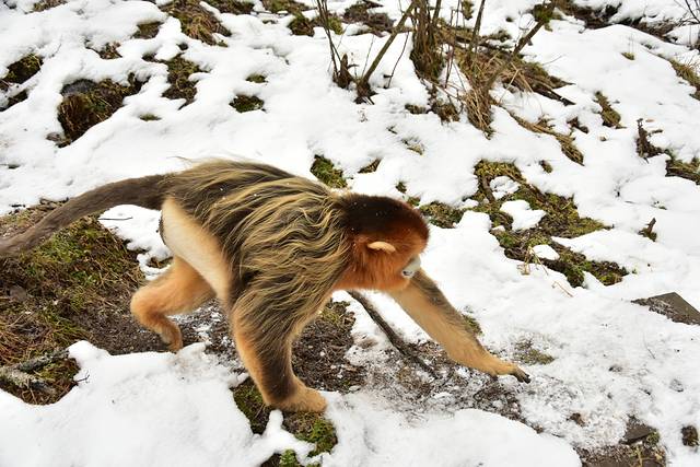 这次我在神农架看到了yesheng金丝猴 ,导游说yesheng金丝猴是很难遇到的,猴群是会换山头的,不知道啥时会换山头,还看到了好几只,太幸运啦!雪花飘飘的时候,金丝猴都是一家三口抱在一起取暖,或者走来走去觅食,蓝脸金衣,红屁股不明显,一身金毛又厚又长,有深有浅很有层次感,太漂亮 了!