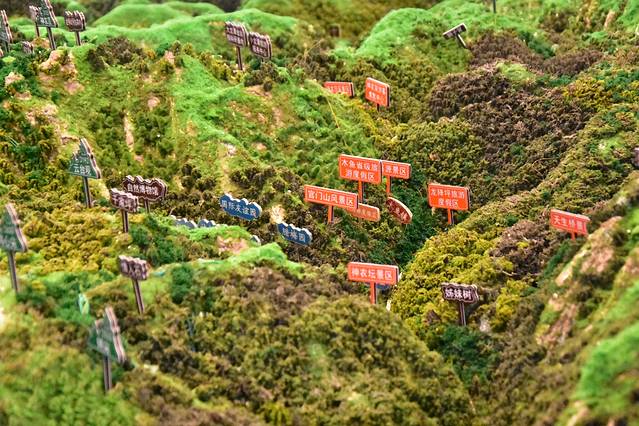 地貌厅有一个大大的沙盘,展示了神农架的地形,让我们一眼看清神农架的各个山峰,展馆里还用多彩的图片,丰富的文字,形态各异的地质构造和石头,以科学的态度借用高科技手段讲解了神农架己经冰川运动,造山运动等的坎坷,分析了地质特点和成因,地理地质知识++