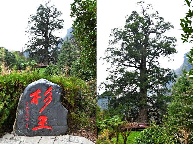 千年古杉,神农坛里的明星就是这个千年古杉,经过科学家检测,它的年龄已经有千年,但是却还处在青年时期,树杆很粗,要6人才能人合抱,树的高度并不是特别高,看比例的话,不走近发现不出是大树,据说这棵树的树根底下有一眼泉水,所以它是神农架唯一长寿超过千年的树。