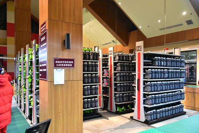 龙降坪滑雪场里面的装备都是挺新的,各种设备都摆放的整整齐齐。