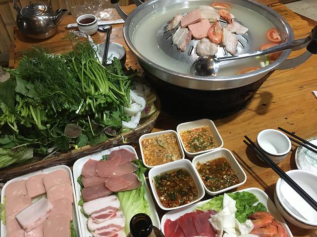开了六年的老挝火锅 上面是烤肉的 下面是煮菜的 蘸料推荐柠檬酱