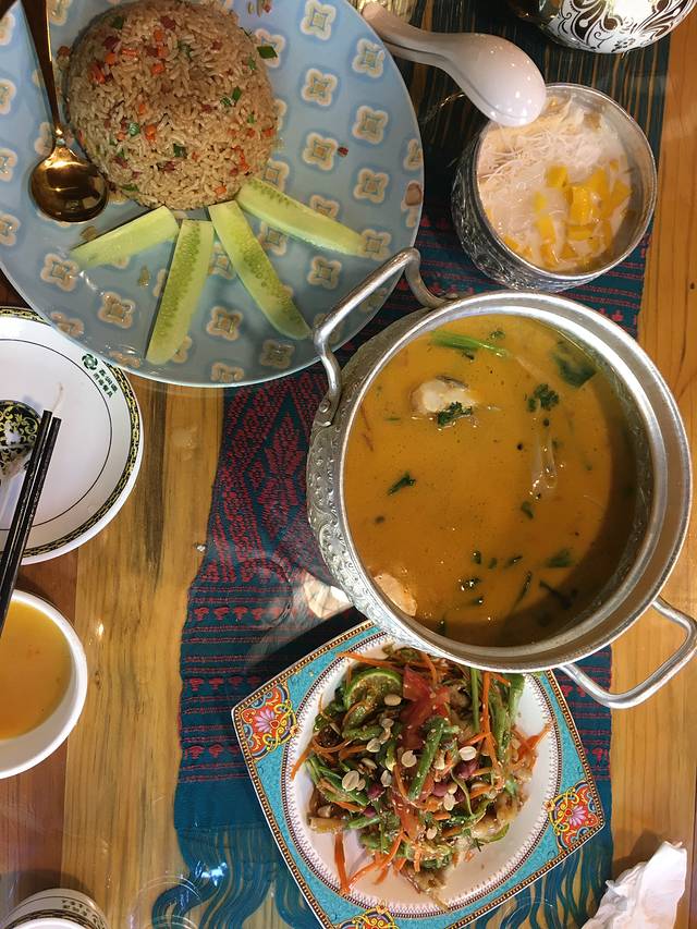西丽兰纳 的餐食真的很不错 全部无雷点 百香果煮的鱼 帕鲁达 酱油炒饭的味道不是很习惯 舂鸡脚 都很棒 小哥很可以哈 为了打王者来了四波客人都不接待 说的厨师下班了 其实就在一起打王者 两点以前去应该都要接待 我们差不多1.30去的 在我们之后还接待了几桌