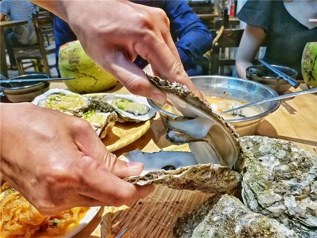 不开壳,直接烤!什么料都不加,纯天然鲜味!吃的时候自己开壳,很有特色。开壳后能看到生蚝够大,够鲜,够肥!手掌大的生蚝打开后肉嘟嘟滑溜溜的生蚝,如牛奶般营养的滋润,绝对让你欲罢不能!