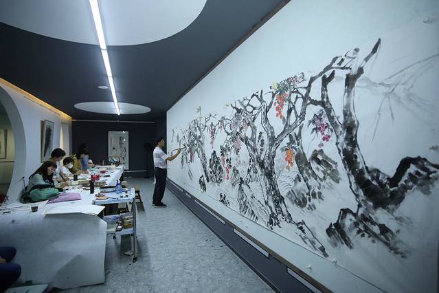 馆内有很多画作正在进行展览,画作精致,意境唯美。翼空间•春睡画园一共有三层,多采用雅致的岭南园林拱门设计,优雅大方,极具韵味。