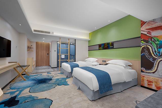 其实选择这家酒店最主要的原因是老公在网上预定的时候看到评论说隔音效果好,两个孩子还小,打打闹闹会容易影响别人,这也是带娃出来的一大问题,一不小心就会被投诉。在聊天的时候我们也询问了酒店负责人这个问题,他说不用担心,在隔音降噪这方面,禾平里采用了五层隔音设计:双层中空玻璃落地窗、三层交叉式降噪窗帘、隔音涂层材料的厚墙、埋设地暖的超厚地板、内置新型桥洞力学板材料的高厚度隔音门。因为靠近机场,飞机的轰鸣声会影响客人休息,所以他们在这方面也做了不少的准备。