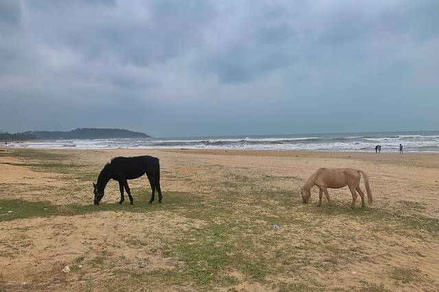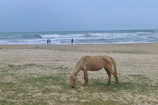 皇后湾并不算大,2000年中央电视台播出的千禧年第一缕阳光照射地的取景就在这里。沿着海滩有很多家商铺和民宿,可以直接下到沙滩上。在这里看日出日落,听海浪拍打沙滩的声音,也是非常的惬意。