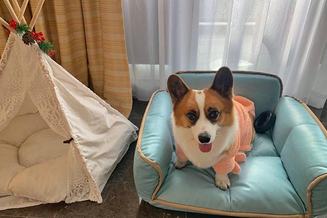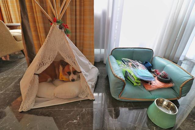 带宠物入住,房间里会准备好齐全的宠物用品,像吹水机,救生衣,梳子,窝,沙发,玩具,水壶等等。非常贴心哦。