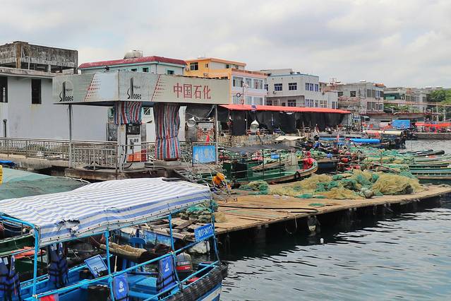 在新村港的码头,这里可以坐船观光。在鱼排之中穿梭,生活在水上的人家,船是他们日常的交通工具。这里可以看到他们最真实最原始最朴实的生活状态。