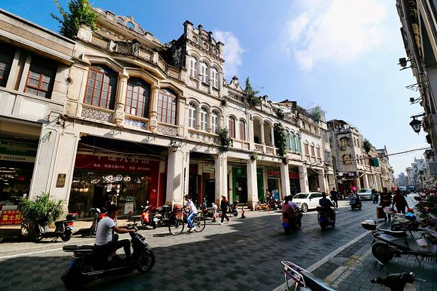 骑楼建筑遍布在海口新华路、中山路、长堤路等多个街道,是历史文化名街。