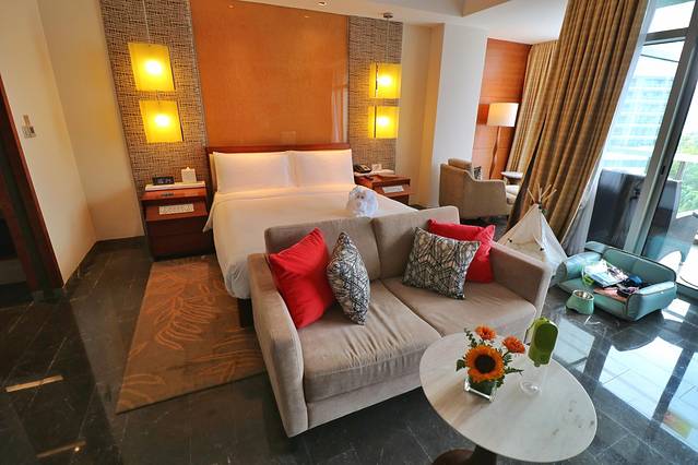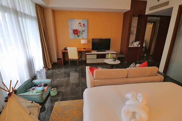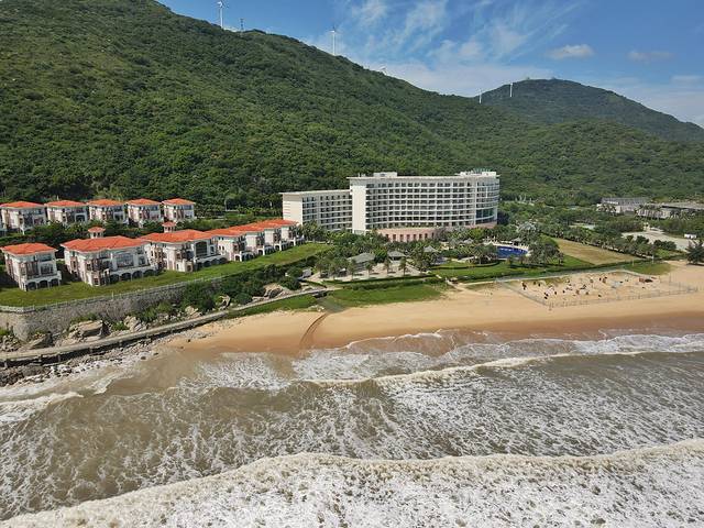 我们入住的至尊海景房,房间宽敞舒适,阳台就可以看到海景。从酒店室外泳池就可以直接到海边。酒店还有专业的娱乐团队,带领小朋友们开展全天候的亲子娱乐活动,满足度假的一切需求。