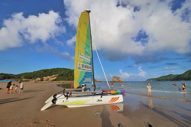 在皇后湾可以看到很多冲浪学习者,还有一些海上项目,这片海域属于内海,不同于海棠湾的波涛汹涌,这里平日里浪小且平静,很适合下海游玩。