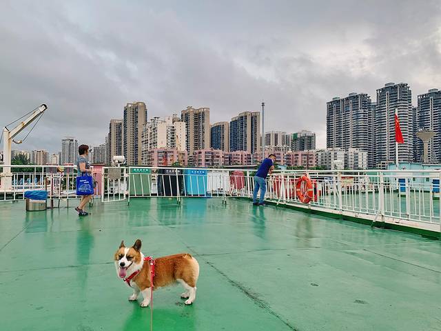 一定要在琼州海峡轮渡管家公众号上提前查好班次提前订票,然后提前一小时抵达码头。码头实行人车分流,小车上除了驾驶员外,随车人员是需要下车的,从旅客通道上轮渡。如果带狗狗的小伙伴,狗狗也是随车一起进去,停好车后驾驶员再带着狗狗去到船舱里。