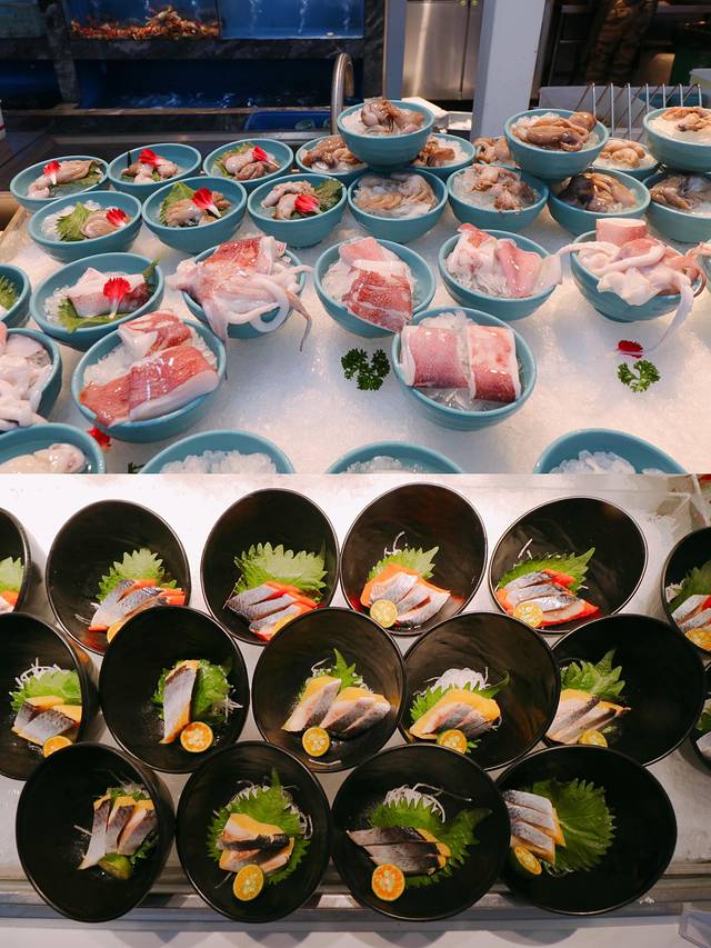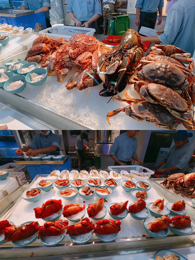 餐厅主打海鲜自助,所以有很多海鲜的种类。食材品质很高都非常新鲜。欣喜的是这里可以吃到波士顿龙虾、帝王蟹、鲍鱼、面包蟹等等的高档海鲜都是无限量供应的。