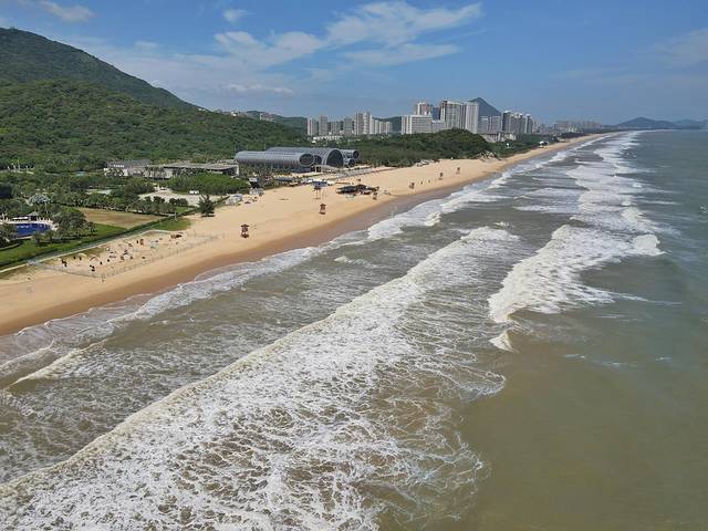 十里银滩是广东唯一的5A级沙滩,位于海陵岛中南部,海岸线长达16.5公里,金色长滩,一望无际。风光毓秀,粗犷壮阔,与石角滩接合成螺线型,三面环山,银滩沙质洁净均匀,水质清澈透明,与同处于海陵岛的闸坡大角湾,以及处于阳西沙扒的月亮湾并称为姐妹湾。