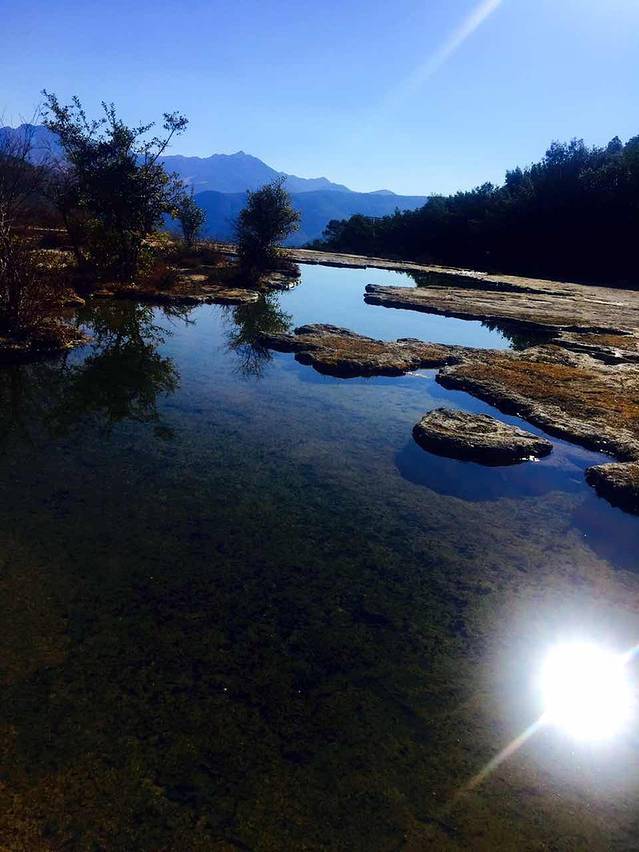 东巴文化的发源地——白水台,世外桃源!这里居住着古老的纳西族,隐藏在大山深处,也是中国最大的泉水台地之一。青山映照下,这层层叠叠的银水美不胜收。木高曾有一首诗:云波雪浪三千垄,玉埂银丘数万塍。