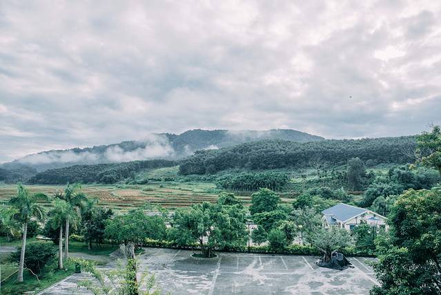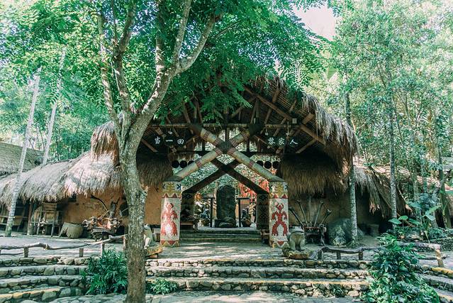 在槟榔谷还吃到了最特别最原汁原味的黎家小吃,黄姜饭、竹筒饭、山栏酒、糯米糕。遇到热情的黎家阿婆,很开心地跟我讲述和许多当地的琐碎小事,就着傍晚不知谁家飘出的烟火气浓重的菜香,丝丝钻进脑子里。扛着相机四处拍照的我反而好像变成了一个格格不入的闯入者,那股钻心的香味,仿佛就是勾人的歌,告诉你,要学会放下,要学会生活。