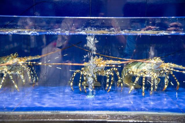 我点了必吃的香辣蟹、椒盐皮皮虾、蒜蓉开边蒸大龙虾以及海南椰子饭,点餐之后店员就到旁边的海鲜卖场直接采购,可以直接看到海鲜采购的过程,新鲜得让人放心。