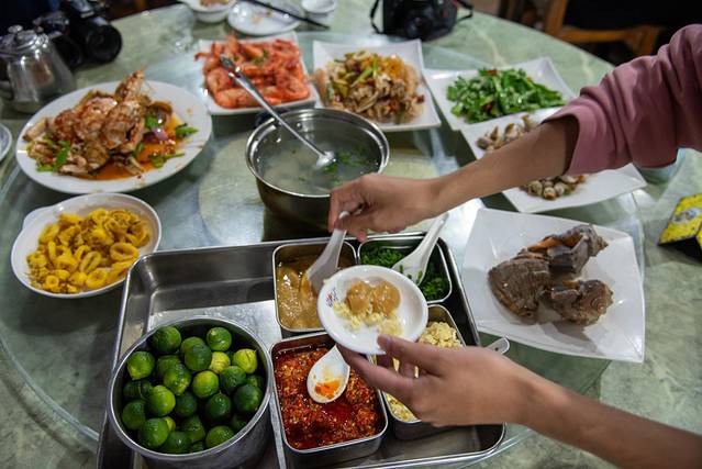 如果不是自家游,哪能因缘际会登上疍家渔排吃晚饭?好客的主人瞧我一个人拿着相机到处拍,热情邀请我和他们一起吃饭,精心准备了一大桌海鲜大餐,还拿出了自家酿制的海马酒,边喝酒边与主人家聊天,问他们的生活琐事,相谈甚欢,以至于在离别时,胸中竟涌起一股浓浓的不舍之情。