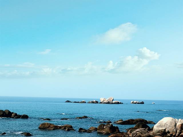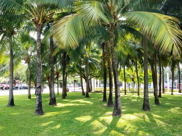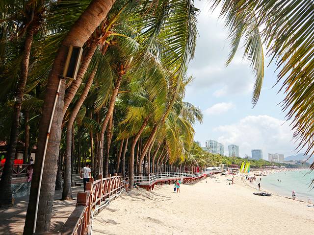 站在小长廊边的椰林下,可以眺望整个 大东海 沙滩的海岸线,将整个景区的景色尽收眼底。长廊木架子上还挂着各种各样的许愿木牌,随风吹动,发出清脆的声音。将整条海岸线溜达了一遍,就这样在椰树下,找一个长椅,感受着习习海风从身边拂过,令人身心愉悦,舒适无比。
