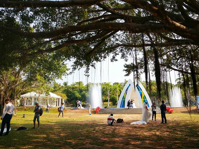 在景区内向着天涯海角时,相反的方向走是一片草坪,草坪上还有许多浪漫的小装饰,这边有很多新人在这边拍婚纱照,在这种环境下取景拍出来的照片一定很好看,很浪漫。