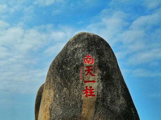 在天涯石和海角石的前一站就是南天一柱石,南天一柱就是老版两元人民币的背景图案背景,记得我第1次来这里时,还说这是我卖出打卡人民币背景的第1步。而我这次再来感觉已经完全不同,因为在这之后我还去过桂林的20元人民币景区。