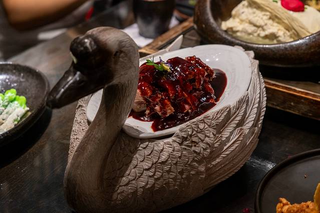 长这么大,我还真的是第一次吃到比烤鸭还好吃的,其他鸭子,这个酱汁儿我真的很想要配方,也太好吃了,有点果酱咸甜的口味。
