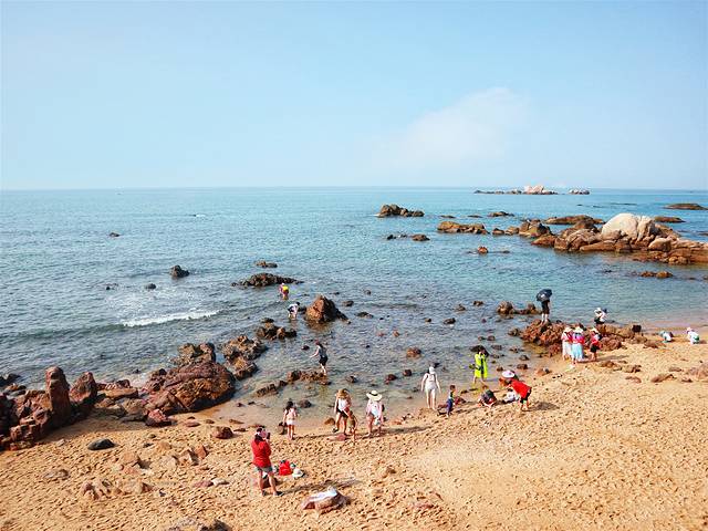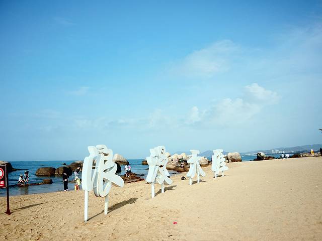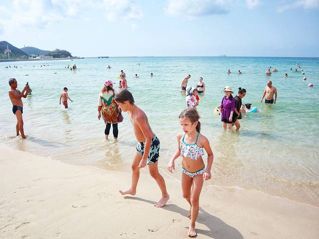向远处望去,看着远处海天一色,听着身边游人们的欢声与乐。那份宁静而又喧闹的蔚蓝,更是给人一阵轻松的感觉。站在沙滩上,放眼望去,整个沿岸无论是沙滩上还是大海中,几乎全都是外国友人,有大人有小孩。如果不是身后安全处显眼的中文安全提示语,我都差点一度认为以为,此时此刻的我身处异国他乡。