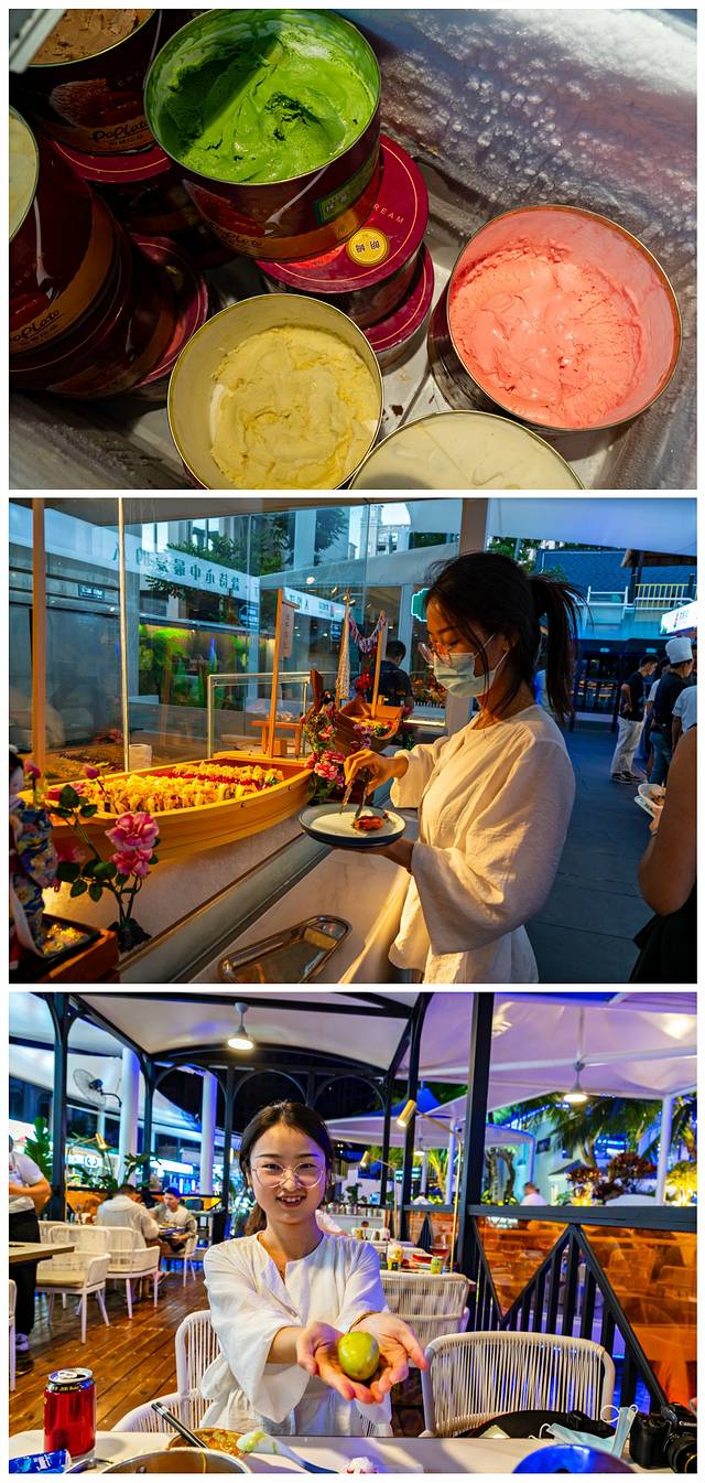 这次到三亚,正好听说他们又新开了一家店,而且装修风格都是全新的,自然是要慕名而来。全新的露天装修风格,搭配上种类超全的自助食材,什么帝王蟹,波士顿大龙虾,生煎法国鹅肝,品牌冰激凌,和几乎没有你找不到的饮品。