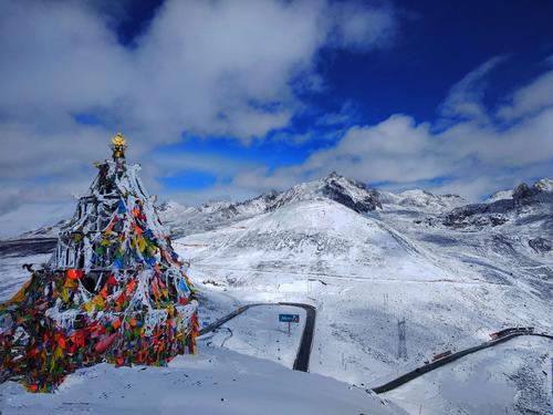 折多山位于四川省甘孜州境内,海拔4298米,是康巴第一关,折多山以东是山区,而折多山以西则是青藏高原的东部,真正的藏区。翻越折多山真正的进入了藏区,以往,不过折多山不知川藏公路之难,川藏道路极其艰险,折多山的盘山公路确实是九曲十八弯,来回盘绕就象"多"字一样,拐了一个弯,又是一个弯,难怪当地人有句话叫:“吓死人的二郎山,翻死人的折多山”。