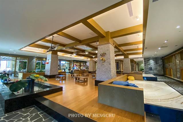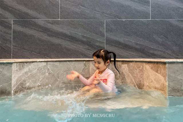 康乐中心一层是汤池区域,有两个热气腾腾的超大汤池,一个是拥有很多隔断空间的隐秘之池,还有一个是拥有水疗床和水疗柱的功能池;另外还有一个常温标准泳池和一处儿童戏水游乐区;