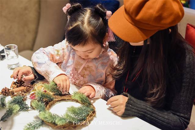 酒店的圣诞氛围也非常浓厚,圣诞树和雪人布置得相当梦幻,三小只围着圣诞树绕来绕去玩得不亦乐乎;亲手编织一只槲寄生花环,度过一段温暖的亲子时光,把难忘的圣诞回忆打包带走;有家人和朋友的陪伴,这才是一个真正浪漫的圣诞节啊!