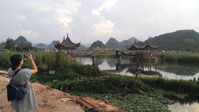 第一天上午从昆明坐高铁到达普者黑站,出站右侧就是去普者黑村的公交车站,坐半个多小时先到仙人洞村,没有下车,接着坐到了普者黑村,找到网上订好的客栈,午餐后溜达到情人桥,到青龙山,爬到山顶观普者黑湖全景,再下山探火把洞,出来后往观音洞方向走,到了青龙山后的“青丘”,就到了《三生三世十里桃花》拍摄地了,徜徉了湖光山色后绕湖再转回观音洞,从那里回客栈。