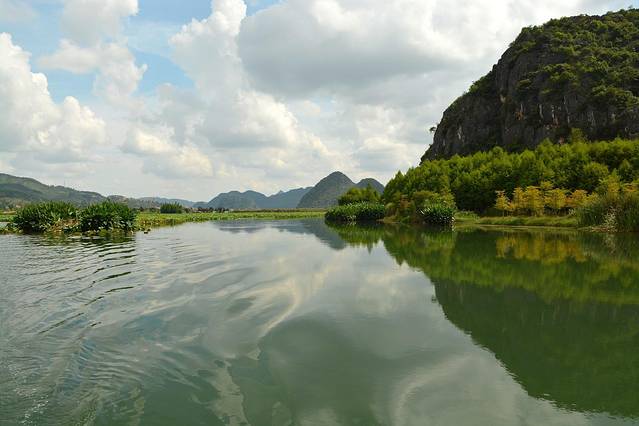云南文山丘北县的“普者黑”,名字听上去怪怪的,查了百度,壮语的意思是“鱼虾丰美的池塘”。名副其实啊!那里有80多个湖泊、200多座喀斯特小山峰,众多古朴的村舍,原生态的农田和草场,真乃逍遥自在的地方。