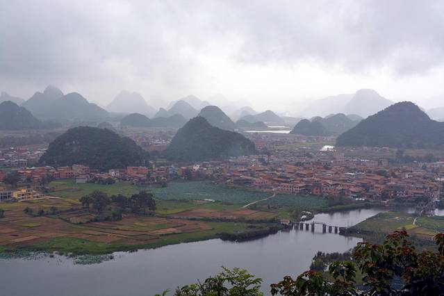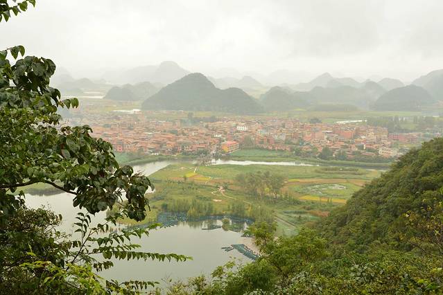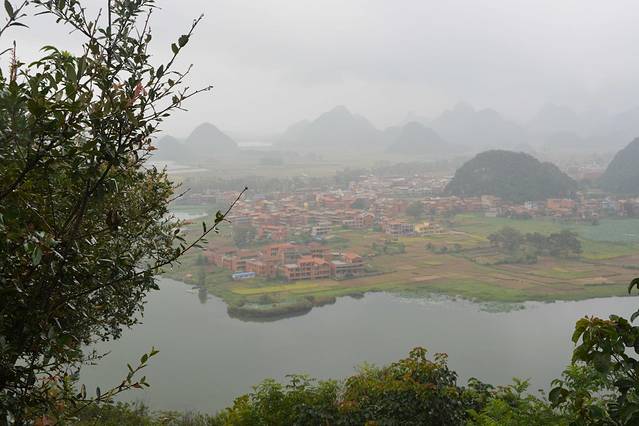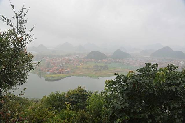 普者黑村尽在眼底,可惜开始下小雨,视线受阻。