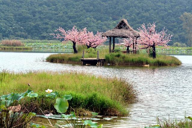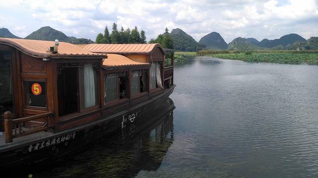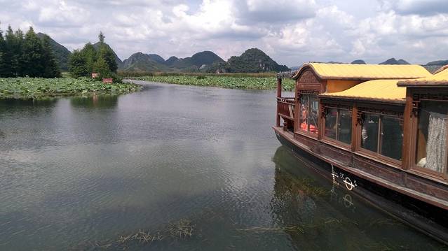 很多游客喜欢乘小舟,我们则想更舒适些,坐画舫。需要去普者黑村入口购票,每人260,还要加上摆渡车费用。先从陆路坐摆渡车到双甲山码头,在那里坐游船,从天鹅湖开始,转到普者黑湖,路过青龙山码头、情人桥、普者黑村等等,兜兜转转一大圈,要三个小时左右吧,湖光山色美景尽览,感觉还是很爽的!精灵精灵樱花樱花樱花
