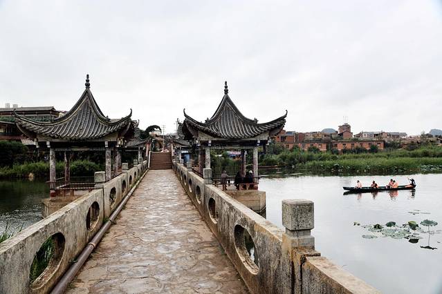 从村子去青龙山要经过“情人桥”,桥很有特色,中间拱起方便行船,两边建有两个避雨亭。