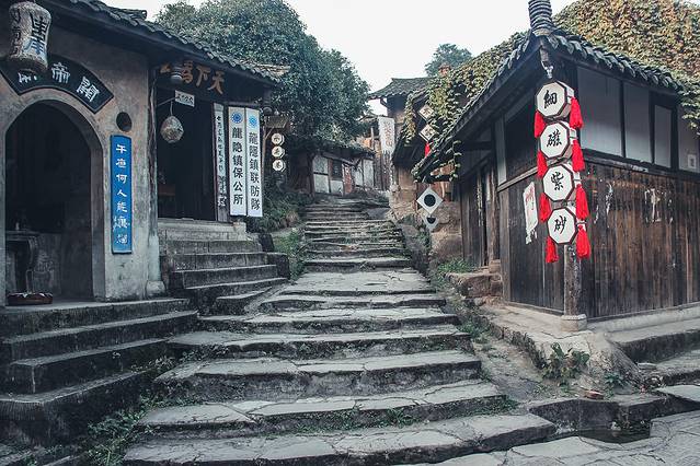 两边是被岁月侵蚀的石墙,地上是被历史打磨的圆润发亮的青石板路,每一家的门头上都挂着红色的灯笼或显眼的门头,找一个你喜欢的酒家,上到二楼,望着龙隐镇,点一杯茶,这时候,你就是藏在龙隐镇里的龙隐镇人。镇上的四合院住宅很多,有的小家碧玉,有的装饰大方,在这里,逛得不是景,可能逛得是一种心情吧。