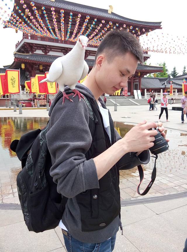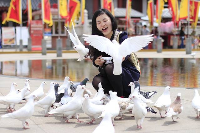 中午在大唐芙蓉园吃了午饭,与鸽子们戏耍。
