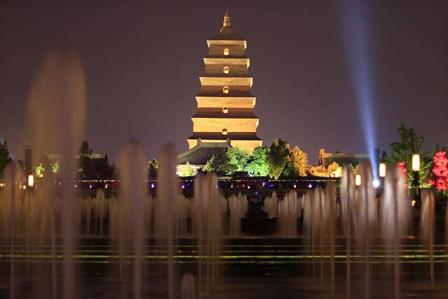 从大雁塔开始,北广场,到南广场。