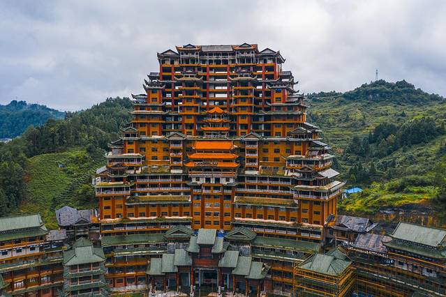 雄伟壮丽、造型别致的天下第一水司楼,是集会展博览、酒店住宿、游览观光等于一体的大型综合体,除具有水族特色元素外,该建筑还融合了苗族、布依族特色,是独山县净心谷景区最具标志性的宏大建筑、世界上最高大最大最壮观的水族建筑。如今这座耗资2亿的建筑已经烂尾还是很可惜,整个景区游客寥寥无几。