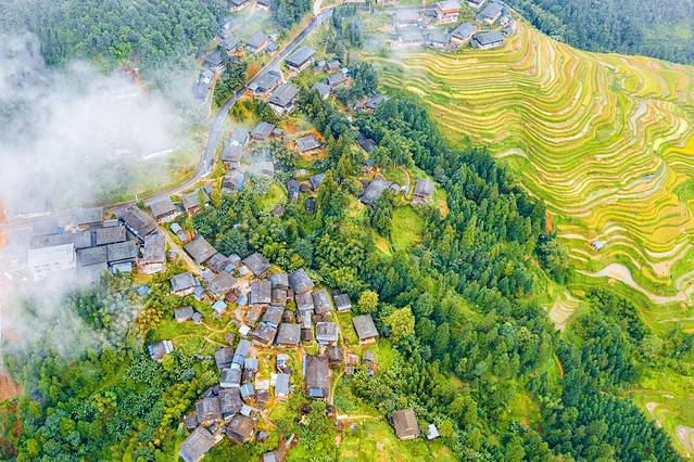 加榜梯田每年4、5月份是注水期,这个时候的加榜是最美丽的时候,梯田会泛着银白色的光芒,整个梯田显得格外婀娜多姿。梯田边,是成片的吊脚楼式的苗寨,无论是云雾缭绕还是炊烟袅袅,远处望去,苗寨在梯田里若隐若现,像是烟雨幻城。