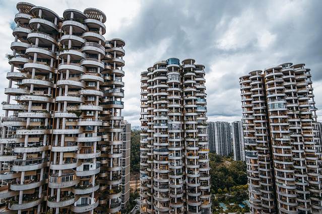 拍摄串串楼的位置在马路对面的小区或者航拍。那样就得爬楼了,请注意文明爬楼,网上看到很多,还爬到楼梯的柱子上面拍照,这个就有点危险了。