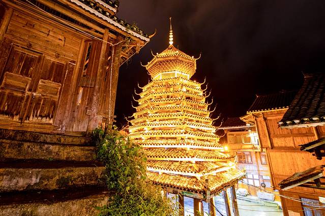 侗寨居住区主要在贵州、湖南和广西壮族自治区的交界处。侗寨擅长建设,他们的寨子结构精巧、形式多样,鼓楼和风雨桥是最具代表性的侗族建筑。他们的村寨依山傍水,聚族而居,大寨三四百户,小寨三五十户。侗族人也擅歌舞,侗族大歌名扬四海。我们去的肇兴侗寨也是世界最大和最古老的侗寨。