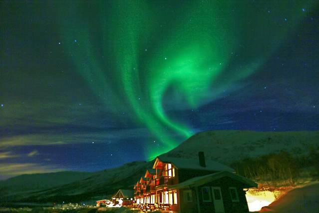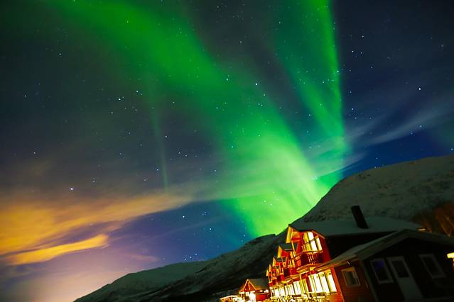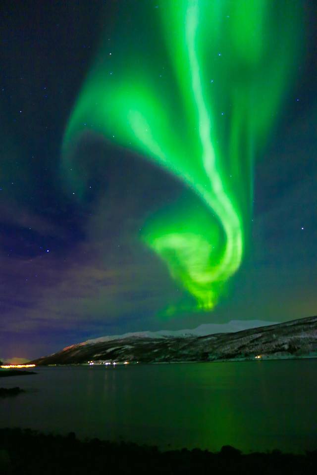 在接近特罗姆瑟 的地方,我似乎看见绿色的光束在天空变动。