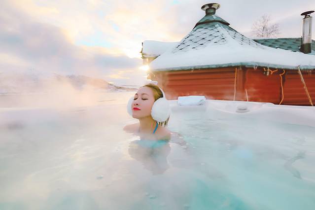 早晨,一缕阳光轻轻地亲吻着脸颊,将我从睡梦中唤醒。耳边,传来海浪拍打着岸堤的回响声,交替的节奏。我推开窗户,被迎面而来的海风徐徐吹佛着发丝,出门,踏过这一层奶油色的雪地,远处红色的小木屋正冒出缕缕烟雾,渐渐地,柴火烧热了整间桑拿小木屋,今天的重头戏是我承包了整个上午的Jaccuzi。