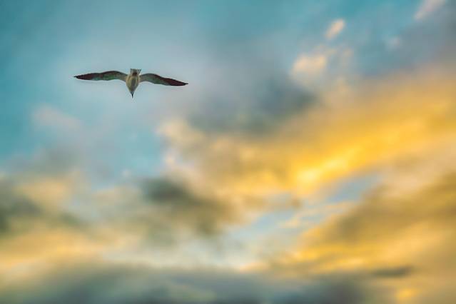 听见海鸟在海浪的交响乐伴奏中争相吟唱。