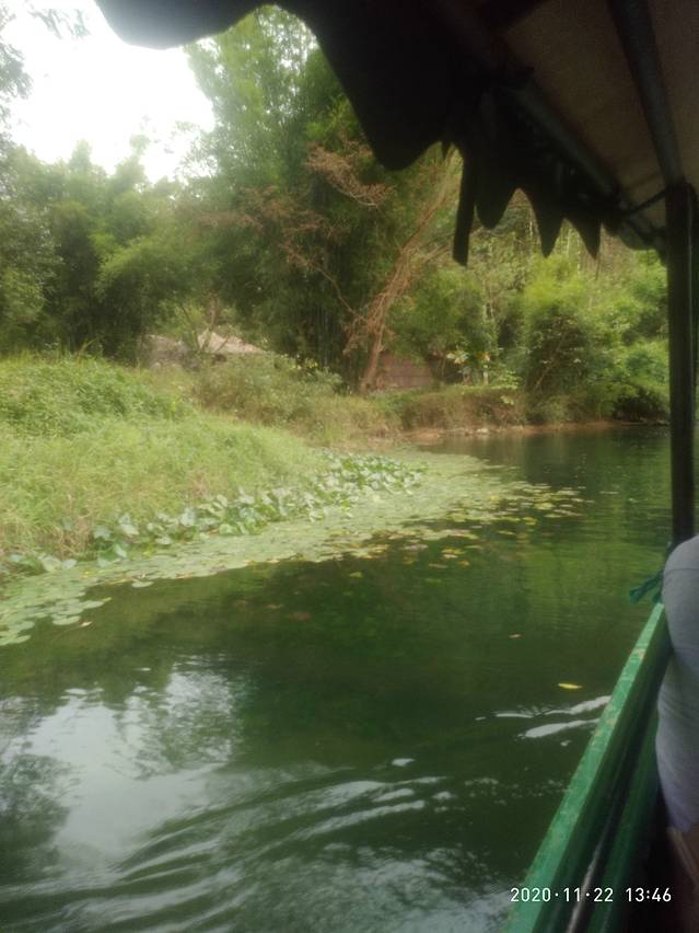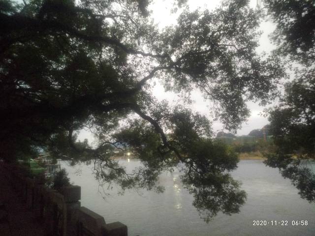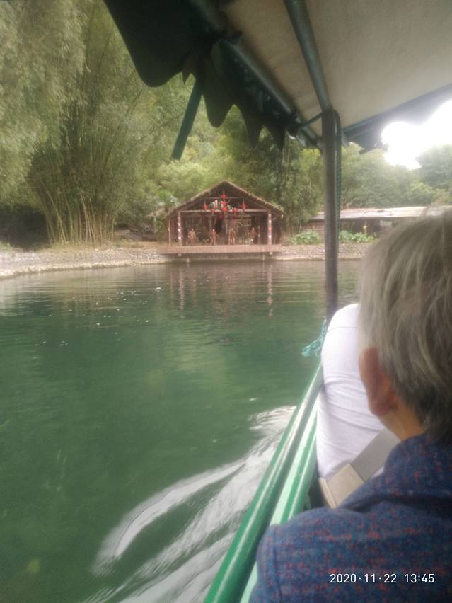 早早来到等候点,不一会儿大巴就来了人也不少。导游重复了行程,也做了一些调整,但整个计划不变的。首先竹筏漂流,不过是大圩码头,天气突变,气温下降,冻人的,幸好拿了衣服。大圩码头是专为团队定制的,人多的厉害,大圩是个古镇,有人为情怀,建筑风格基本一样,老式,怀旧,古朴。做在4人竹筏上,狂风吹作太冷,无尽观看,只是体会下,沿江风景没啥不同,只是青山 绿水而以,山似奇异,感觉不大。